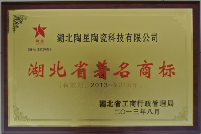 1月13日,湖北省工商局將“湖北省著名商標”牌匾和證書授予湖北陶星陶瓷科技有限公司,至此,陶星陶瓷公司正式步入著名商標行列。
