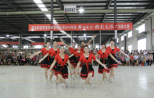 9月12日下午,陶星陶瓷公司 “舞動(dòng)活力?精彩無(wú)限”廣場(chǎng)舞大賽在公司四車間隆重舉行,13支參賽隊(duì)伍精神抖數(shù)、活力四射,共同為在場(chǎng)的100多員工來(lái)帶一場(chǎng)視覺(jué)盛宴。