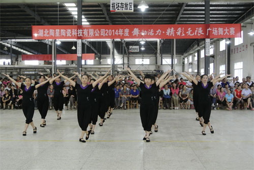 陶星陶瓷公司自組建以來(lái),大力開(kāi)展員工群文活動(dòng),通過(guò)舉辦職工運(yùn)動(dòng)會(huì)、工間操大賽等形式,加強(qiáng)員工對(duì)企業(yè)的認(rèn)知度和歸屬感,激發(fā)廣大職工健康美麗、昂揚(yáng)向上的精神風(fēng)貌。公司總經(jīng)理杜修全表示,此次活動(dòng)的成功舉辦,旨在充分展示公司廣大職工的精神風(fēng)貌,并通過(guò)類似的活動(dòng),激勵(lì)廣大員工為公司更好更快的發(fā)展做出新的貢獻(xiàn)。