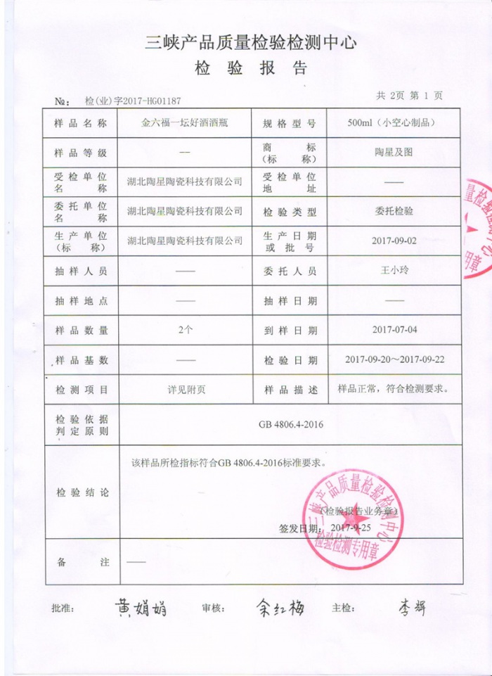 關(guān)公坊陶瓶質(zhì)檢報(bào)告