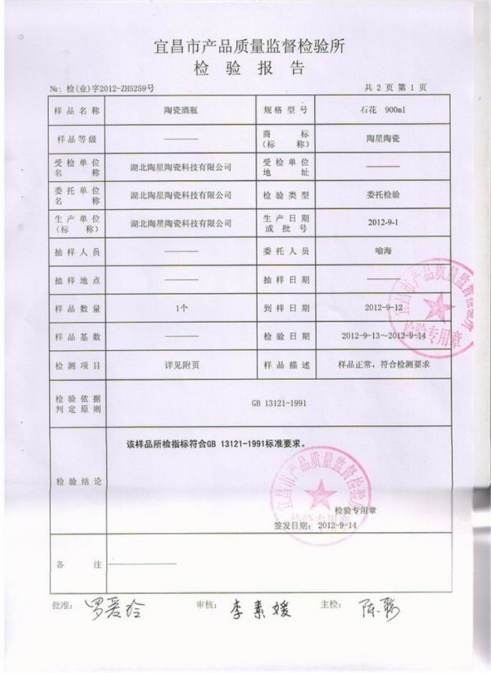 下一篇:陶瓷酒瓶白色質(zhì)檢報(bào)告
