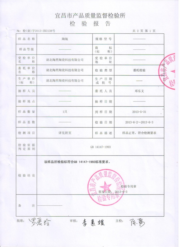 下一篇:杏花村陶瓶質(zhì)檢報告