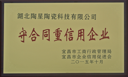 近日,從宜昌市工商局獲悉,湖北陶星陶瓷科技有限公司獲宜昌市第十屆“守合同重信用企業(yè)”(2013-2014年度)榮譽(yù)稱號,為公司在日用陶瓷行業(yè)持續(xù)發(fā)展增添了信用度和美譽(yù)度。