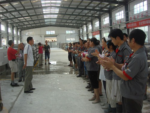 王興主席在車間現(xiàn)場(chǎng)鼓勵(lì)員工