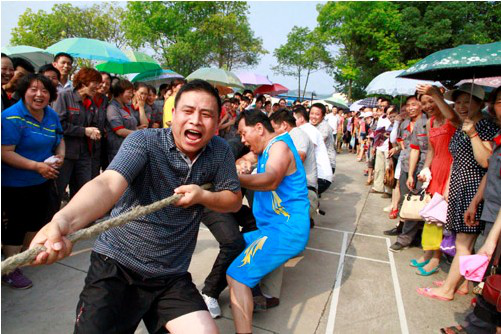 6月17日,陶星陶瓷公司舉行了建廠以來首屆職工趣味運動會,公司總經(jīng)理杜修全,副總經(jīng)理、工會主席陳成以及各部門負(fù)責(zé)人出席開幕式。此次運動會本著貼近職工群眾生活,促進(jìn)身心健康的宗旨,集趣味性與娛樂性于一體,運動會以二車間歌舞表演《我從草原來》和四車間拉丁舞表演拉開帷幕,贏得在場觀眾一片歡呼。運動會設(shè)有趣味競技、專項競技、團體競技三大類,涵蓋螃蟹賽跑,100米障礙接力賽,男子籃球,男、女子羽毛球,男、女子乒乓球,團體拔河等八個項目。賽場上,參賽隊員爭相角逐,現(xiàn)場氣氛熱鬧非凡,笑聲、掌聲、歡呼聲、加油吶喊聲此起彼伏。
