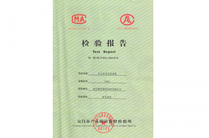 2012關(guān)公坊年青花瓷酒瓶500ml質(zhì)檢報(bào)告